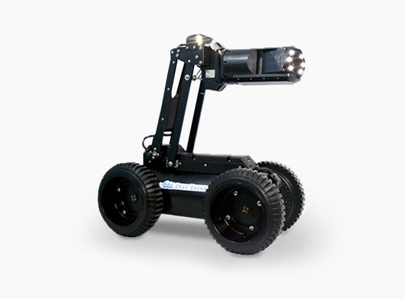 Modular add-on for your DT340 Pipe Crawler, this attachment plugs into the top and front of the main crawler body and allows you to robotically raise and lower your camera head. Raise the camera head above water lines or up to the center of a 36″ (900mm) diameter pipe. Auxiliary LED lighting on the arm is also included, doubling the light power of the crawler to 2000 lumens.