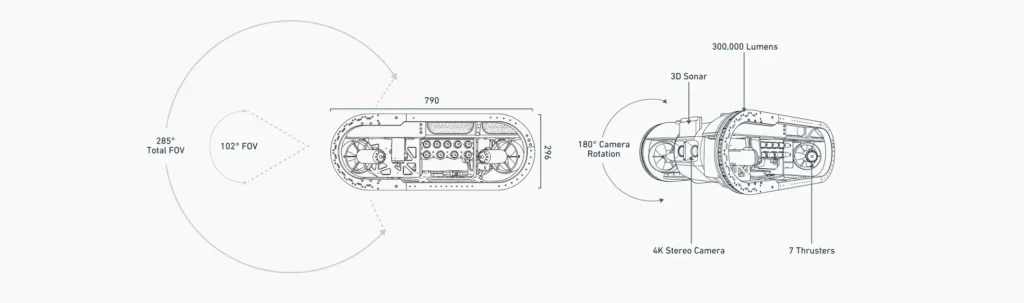 In addition, integrated 3D Sonar SLAM with photogrammetry enables real-time mapping, precise localization, and repeatable inspections. This allows operators to generate high-resolution 3D models and maintain consistent inspection paths over time.